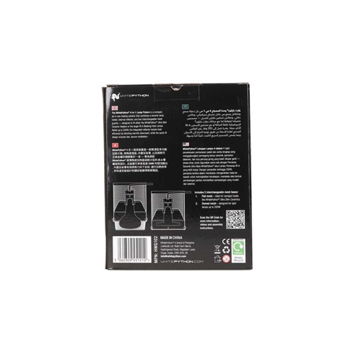 WhitePython 4-in-1 Lamp Fixture Leaf Green is a high-performance heater guard crafted for keepers seeking safety, efficiency and modern design. Its robust, ventilated metal exterior and polished internal reflector focus heat downward onto your reptile, minimising wasted heat and protecting the upper structure of wooden vivariums. With two interchangeable mesh guards included, the fixture supports a wide range of heat sources, performing at its best with WhitePython Ultra Slim Ceramic Heaters and WhitePython I-RA Basking Heat Lamps (listed separately). A pre-installed ceramic E27 lamp holder rated up to 200w, combined with a high-temperature-resistant silicone cable, ensures dependable long-term use.